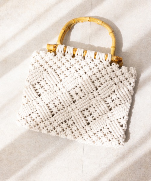 バンブーハンドル編みバッグ