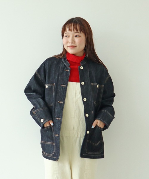 すっきりとしたスタンドの衿で、女性が着ても無骨になり過ぎないよう意識しました。メンズライクなシルエットと大きなポケットなどワークなディティールで、レースブラウスなど甘いアイテムと合わせたギャップのある着こなしも新鮮です。