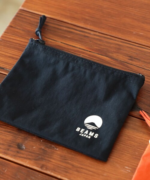 バッグの中に入れてかさばりにくいマチなしのコンパクトなフラットポーチ。本体と同素材の引手を付けたファスナーと〈ビームス ジャパン〉ロゴマークを入れたシンプルなデザイン。