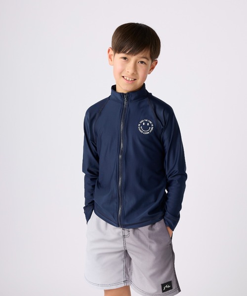 スマイルデザインをプリントしたフルジップのラッシュガードは、学校でも使いやすいシンプルなデザインです。
