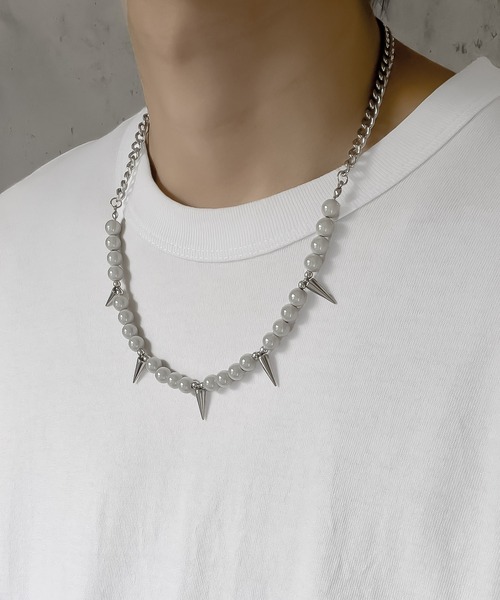エッジの効いたスパイクパーツが印象的なチェーンネックレス。