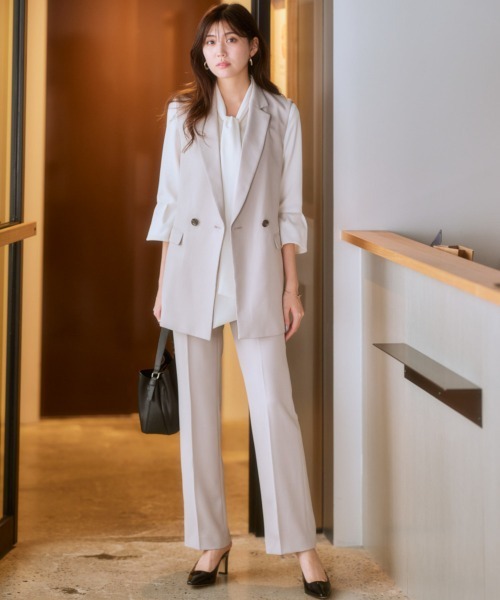 3点セット、40代、50代、おしゃれ、お仕事服、お呼ばれ、きれいめ、ウェア、ウォッシャブル、オフィス、!オフィスウェア、カジュアル、ジャケット、ストレート、スーツ、!!セットアップ、セレモニー、ダブルブレスト、テーラード、ドビー、ハレ服、パンツ、ビジカジ、ファッション、フォーマル、ブラウス、ボウタイ、ママ、レディース、レディースファッション、七五三、二次会、体型カバー、入卒、入園式、入学式、初夏、卒園式、卒業式、同窓会、夏、大きいサイズ、大人、大人め、学校行事、接触冷感、母、洗える、洗濯機OK、洗濯機洗い、洗濯機洗いOK、着回し、結婚式、背抜き、謝恩会、通勤、食事会