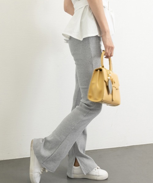 選べる2タイプ あったか フレアレギンス きれいめ セミフレアパンツ サイドスリット ボトムス カジュアル らくちん