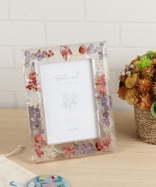 フレームの中にドライフラワーを閉じ込めたフォトフレーム。