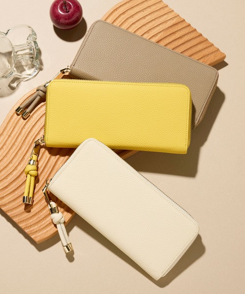 上質なレザーの風合いが際立つミニマルなデザインに、ノットの引き手とキラリときらめくゴールドカラーのリングがアクセント。