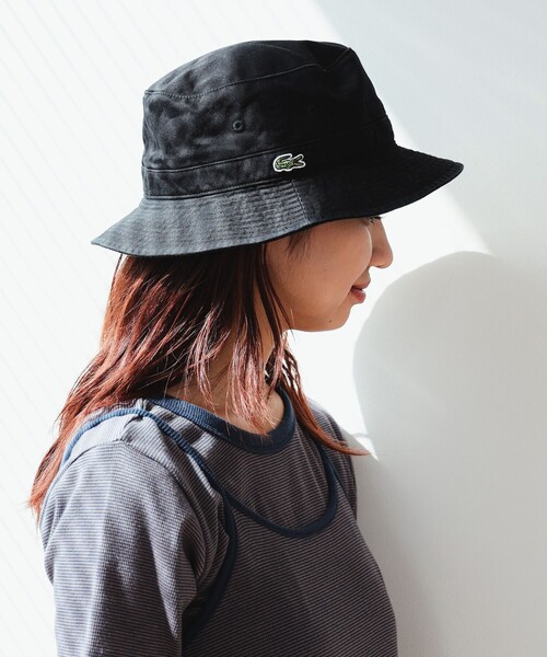 ベーシックなデザインのバケットハット。ワニロゴパッチがシンプルなデザインにアクセントを添えます。