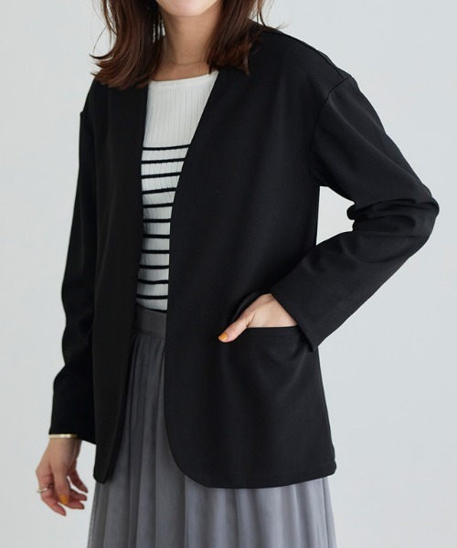 スッキリとしたVあきでシャープさは残しつつ、肩の力の抜けたようなリラックス感のあるジャケット。ややドロップショルダーで身幅を少し広めに取った抜け感のあるフォルムになっており、かっちりとしたジャケットではなく、シャツのように気軽に羽織るだけでエフォートレスな雰囲気にスタイリングを仕上げます。
