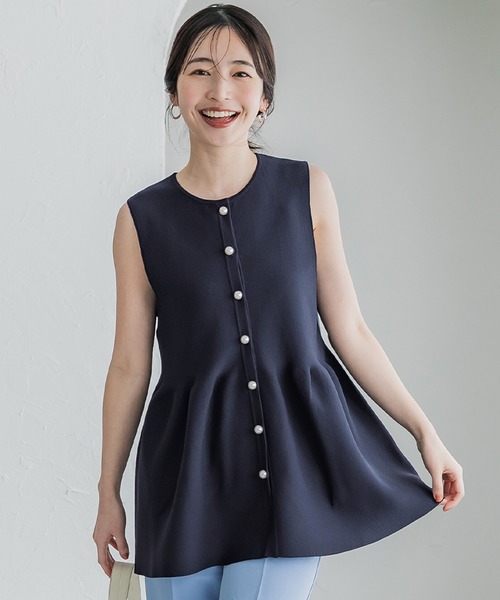 トップス ペプラムニット ベスト クルーネック フレアニット パール 重ね着 シンプル きれいめ 伸縮性 25ss コカ COCA coca COCA coca