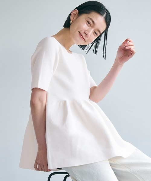 トップス 半袖ペプラムニット プルオーバー フレアニット Aライン ラウンドネック 上品 ストレッチ ミディアム丈 シンプル 25ss コカ COCA coca COCA coca
