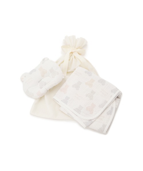 【ラッピング済み】【BABY】ベア3重ガーゼブランケット&ピローSETをギフト巾着にラッピングしてのお届けになります。(オフィシャルサイト、ウサギオンラインのみショッピングバッグ付き)