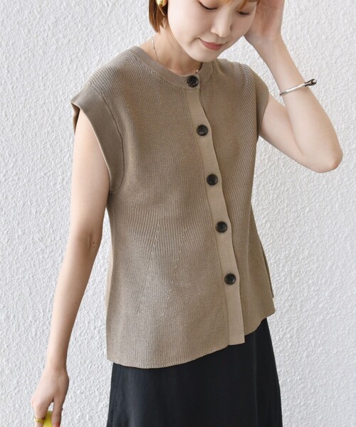 メリハリのある女性らしいシルエットで、品のある印象に仕上げてくれるニットジレ。