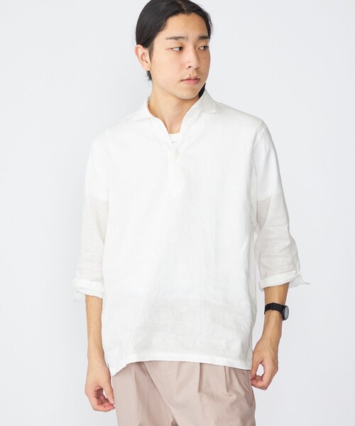 毎年好評のカプリシャツをアップデート!機能糸”SOLOTEX(R)”とリネンのハイブリッドファブリックを使用したカプリシャツ(七分袖)【素材特性】滋賀県の藤居織物で織った別注生地。今シーズンはリネン原料を変更し、66/1のリネン糸と、ソロテックスを使用。リネンの風合いとストレッチ性はそのままにソロテックスの形態安定性能を備えたSHIPSオリジナルリネン素材です。