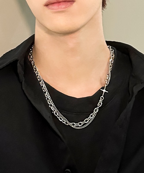 クロススターがアクセントとなった太めチェーンと細身チェーンのダブルチェーンネックレスです。