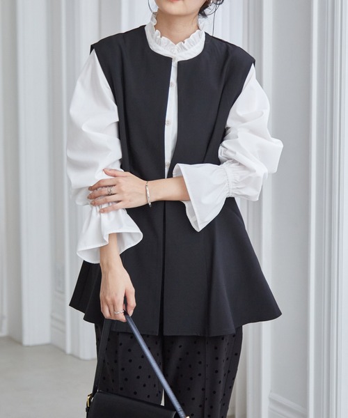 きれいめコーデにぴったりのペプラムデザインのシンプルジレベスト