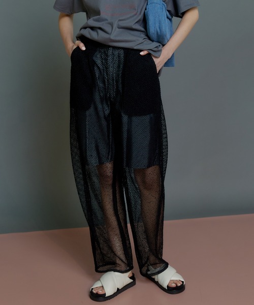 ポケットが透けたキャッチーなデザインがポイントのテーパードパンツ。