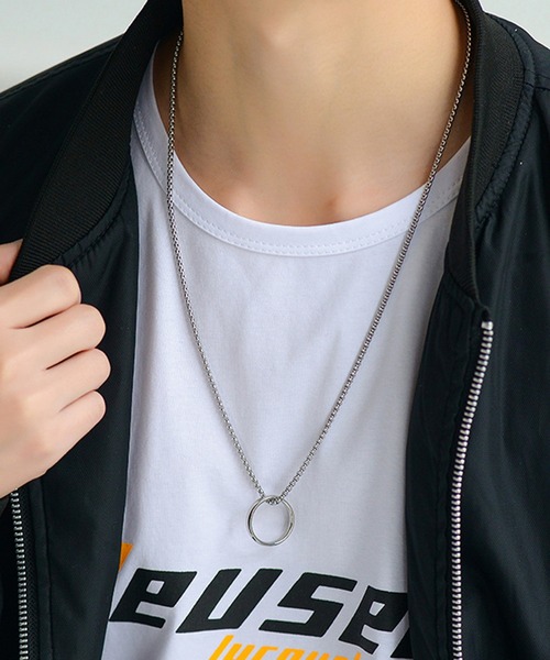 リング チェーンネックレス シルバー シンプル ストリート 韓国 韓国ファッション