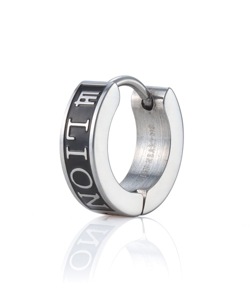 シンプルなロゴデザインのフープピアス