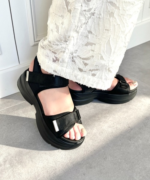 プラットフォーム スタイルアップ スポサン スポーツサンダル カジュアル 大人かわいい 歩きやすい スポサン 厚底 ボリュームソール サンダル 調節可能