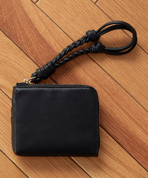 ・編み込みのストラップがトレンドデザインのミニ財布。
