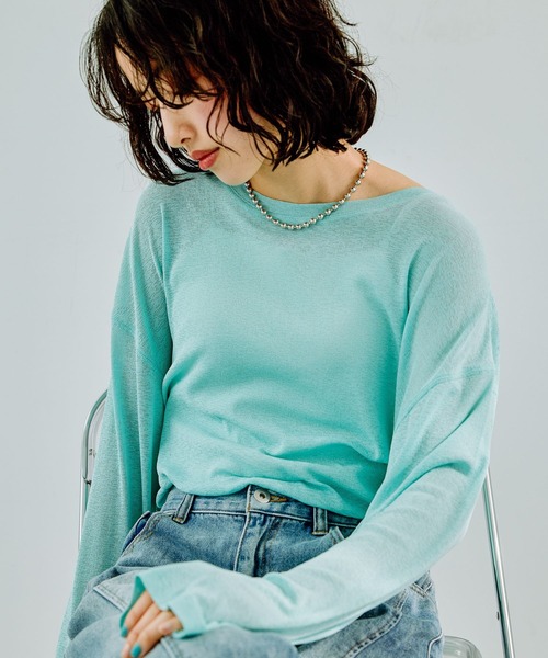 滑らかな肌触りと抜け感のあるゆるっとしたシルエットがヘルシーで女性らしい1枚。安心して着れる透け感なので、チャレンジしやすいのもポイント!着るだけで春らしさが叶います!