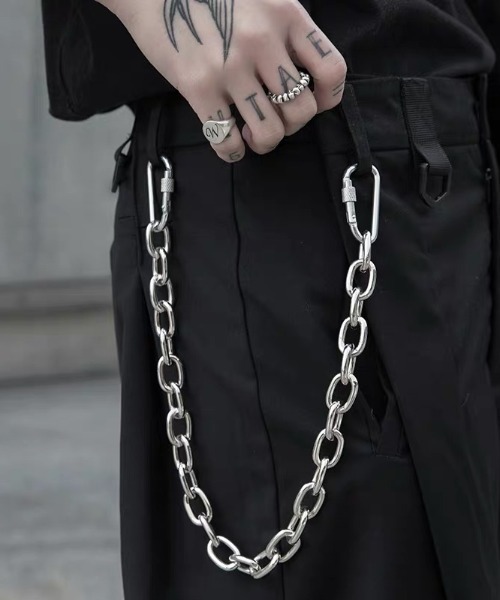 コーデのアクセントになるシルバーのウォレットチェーン