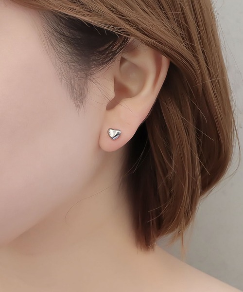 ぷっくりフォルムの艶めくハートモチーフが可愛いスタッドピアス。