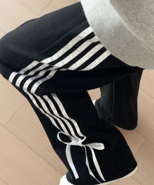 ルーズストレート リボンデザイン ラインパンツが登場♪