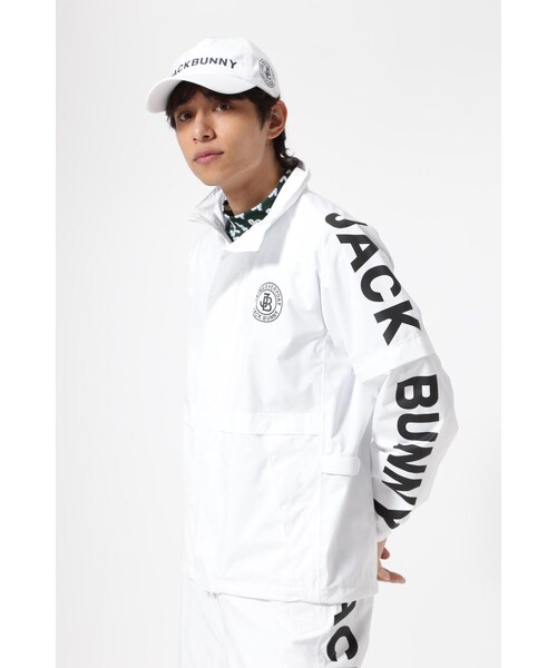 袖のJBロゴで大きなインパクトを与えた、レインブルゾン。雨の侵入を防ぎ同時に衣服内のムレを外に逃す、ハイレベルでの耐水性と透湿性に優れたレインウェアです。半袖としても使える着脱可能な袖や、通気性を確保するベンチレーションなど、1年中気温や湿気の状況に関わらずに快適にプレーが楽しめるように作られています。ダブルジップのフロントファスナー、ベルクロ仕様の袖口、裾のドローコードなどで、シルエットに変化をつけて着用できます。また、使用しないときは、コンパクトに折り畳んで常備携帯できる便利な巾着タイプの収納バッグ付き。同シリーズの、ボトムやキャップなどと合わせて着用可能です。