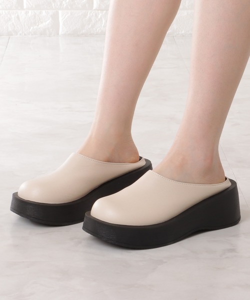 コロンとしたフォルムが目を引く、厚底シューズ。