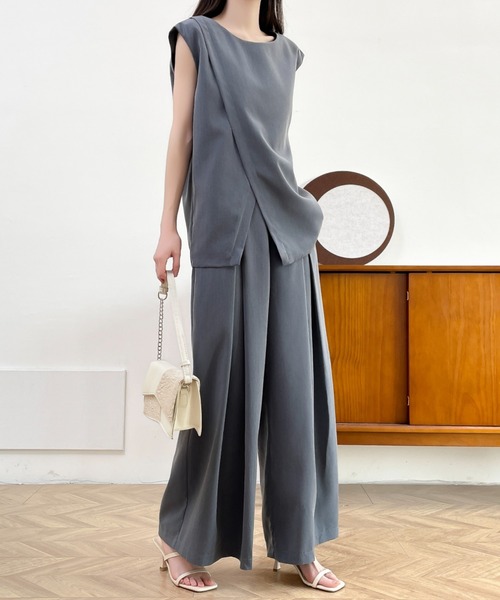 セットアップ カシュクールベス&タックワイドパンツセットアップ レディース