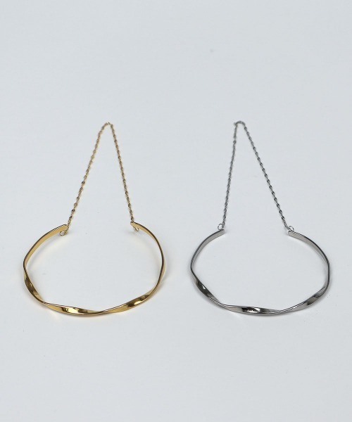 動きのあるねじれデザインのバングルに、華奢なチェーンを組み合わせた2連ブレスレット。