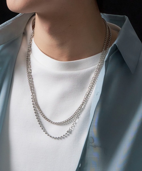 【存在感のある2連のシルバーネックレス】チェーンのみのシンプルでどんなコーデにも万能に使えます。