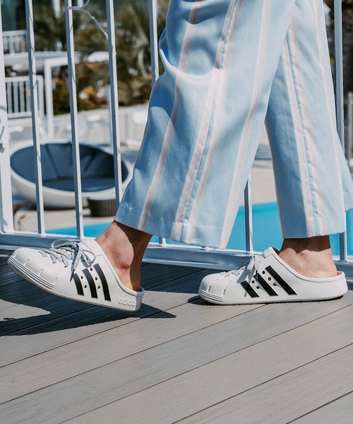 【アディダス公式ショップ】リサイクル素材を一部使用した、スタイリッシュなスリッポンクロッグ。カジュアルな日にぴったりのこのアディダス アディレッタクロッグは、ちょっとした用事で出かけたり、プールサイドでリラックスしたりするときも、さっと履いてすぐに外に出られる頼れるアイテム。ワンピース構造の成型デザインが通気性を高め、EVAフットベッドが一歩一歩にクッション性をもたらす。軽くて丈夫な作りで、ジョガーパンツからスイムウェアまで、どんなアイテムにもエフォートレスに合わせられる一足。フロントのレースアップデザインが遊び心を添える。