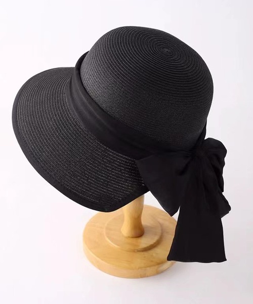 帽子に巻かれた大きなリボンが後ろで垂れ下がるので、ワンピースやスカートなどのキレイめのアイテムと相性抜群です!