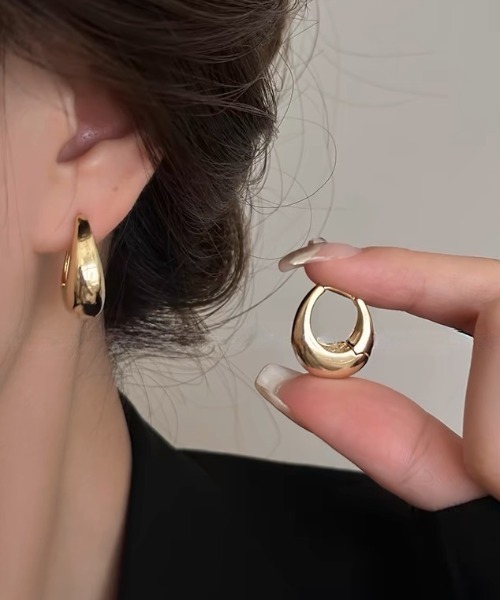 ぷっくりと丸いフォルムが可愛らしいドロップメタルフープピアス。