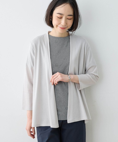 ・強撚糸で編み立てたひやさらコットン素材のカーディガンはUVカット効果もある優秀な1枚です。