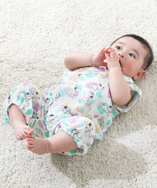 カラフルなプーと101の総柄がポップで可愛い「ドレスオール」としても「カバーオール」としても使える便利な2WAYオール♪