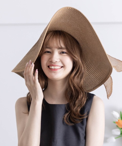 帽子 ハット リボンストローハット「旅行 リゾート 大人 フェミニン」「再入荷」 レディース