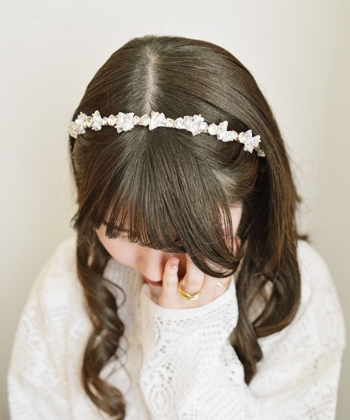 細身のカチューシャに眩い大粒のビジューやビーズが可愛い*:+。