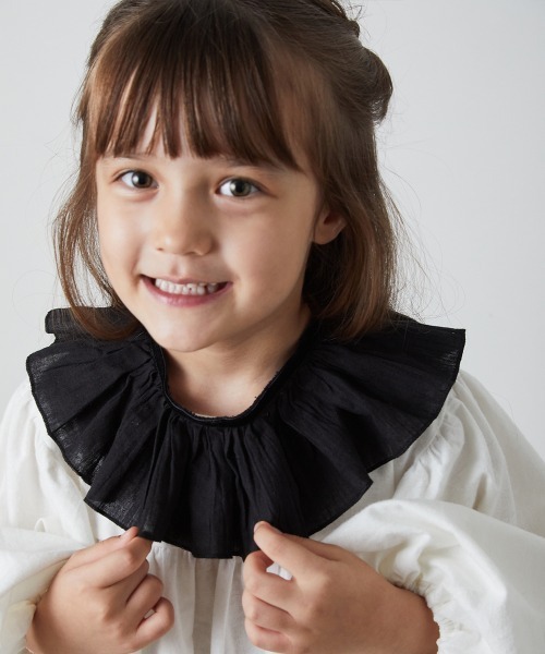 たっぷりと寄せたギャザーがロマンティックな雰囲気を醸し出す付け襟。
