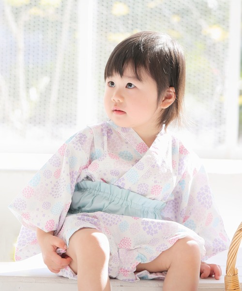 浴衣風甚平+帯の2点セットで簡単に着られるのが嬉しい。