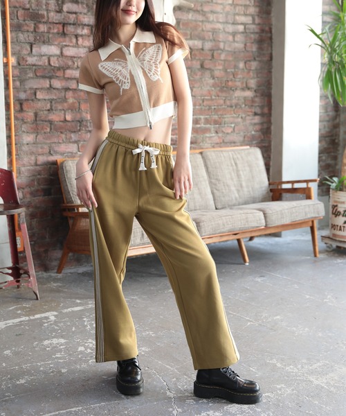サイドデザインラインがアクセントを添えた、モダンなスウェットワイドパンツ。