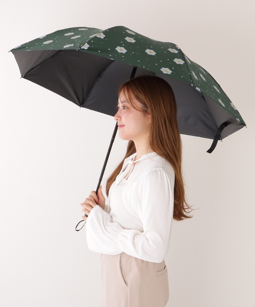 キュートな花柄プリントが目を引く、折りたたみ傘。