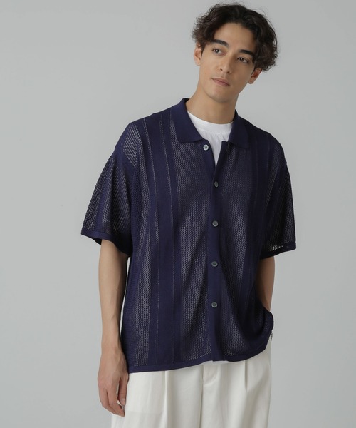 ・夏らしいドライなタッチ感の糸を使用した、透け感を楽しめるニットシャツ