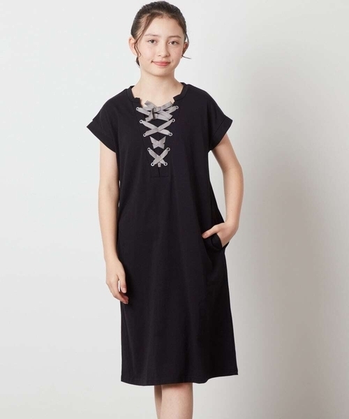 ・フロントリボンのレースアップが女の子らしくかわいいデザイン。