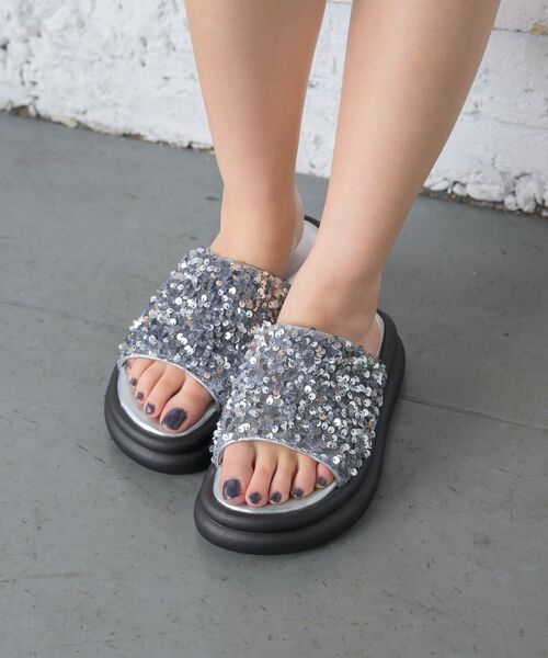 <キラキラ輝くスパンコールデザインの楽ちんサンダル>