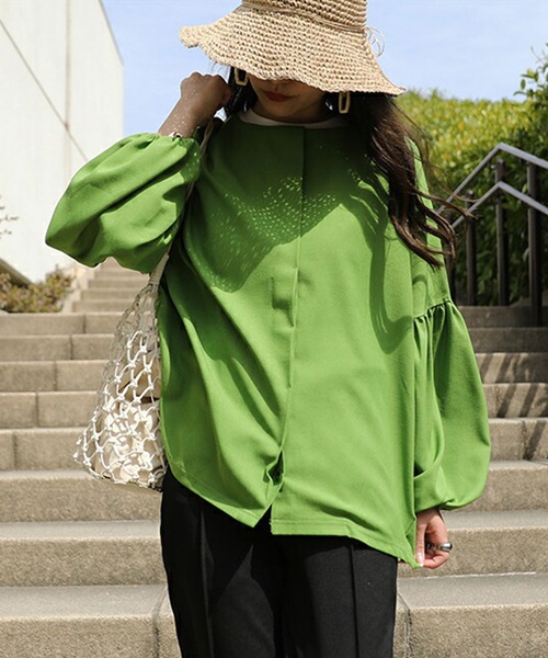 ぽわんと膨らむ袖が二の腕カバーにもなるデザインで着用時のシルエットもかわいい一枚です。