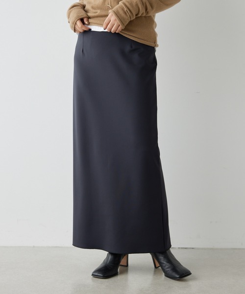 ■すとんと落ちるロング丈ですっきりと見せ、ハイウエストでスタイルアップ効果も◎。