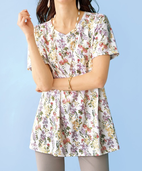 夏らしい鮮やかな柄で顔まわりがパッと華やぐ1枚。
