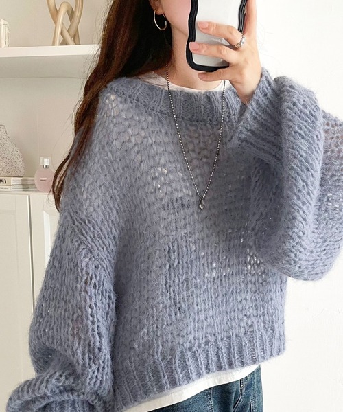 ゆったりしたシルエットとシアーな透かし編みが特徴の